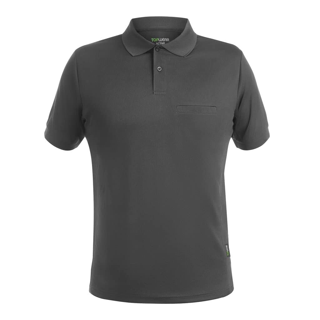 פולו גבר שרוול קצר עם מנג'ט גמיש, כיס חזה וצווארון קלאסי, בד מנדף דרייפיט, בצבע אפור כהה