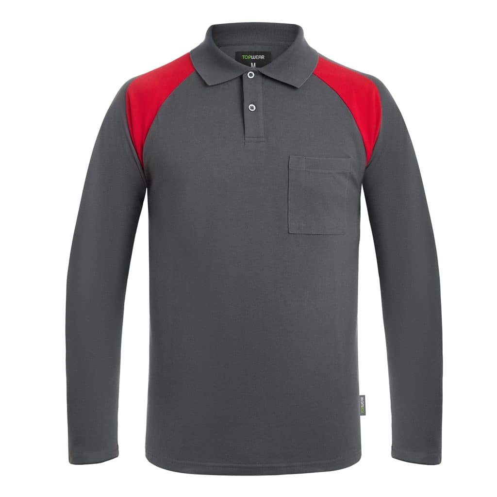 פולו שרוול ארוך מעוצב על ידי גסקה בצבע אדום אופנתי, 100 אחוז כותנה בצבע אפור עם כיס חזה