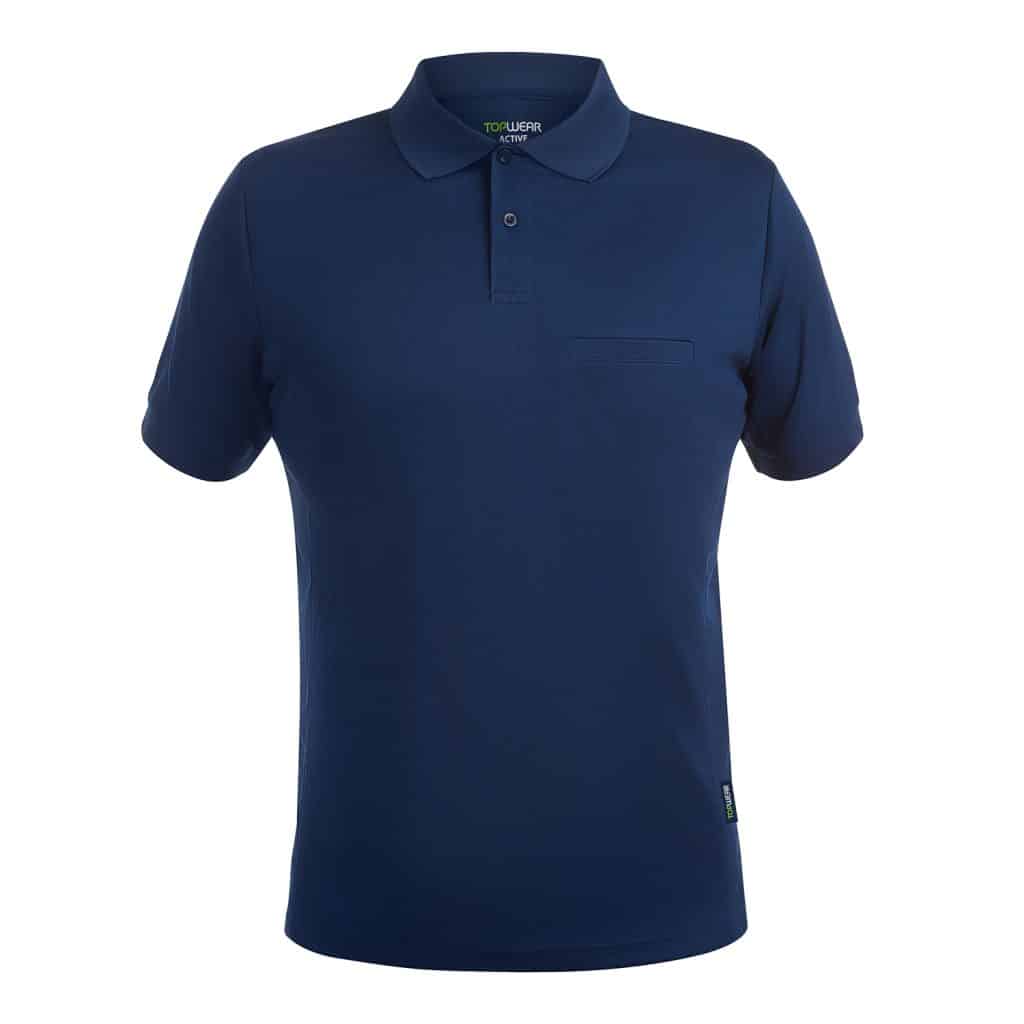פולו שרוול קצר, ספורט אקטיס מבד דריי פיט מנדף בצבע כחול כהה עם כיס חזה